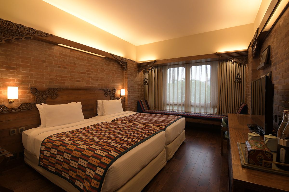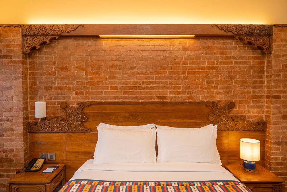 Stepping into the Heritage Deluxe Room is like walking into a living piece of history, a graceful tribute to the architectural soul of the Kathmandu Valley. The walls, adorned with traditional red brickwork and detailed wooden carvings, echo the timeless charm of Nepal’s ancient palaces and courtyards. Each element has been crafted to reflect the cultural brilliance of a bygone era, reimagined for modern comfort.